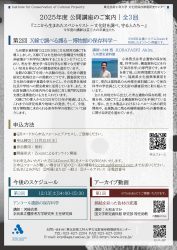 文化財保存修復研究センターでは、文化財の保存修復とその継承や活用について考えるため、2014年から無料の公開講座を開講しています。本年度は「ここから生まれたスペシャリスト ~文化財を調べ、守る人たち~」をテーマに掲げ、全3回をオンラインで開催いたします。